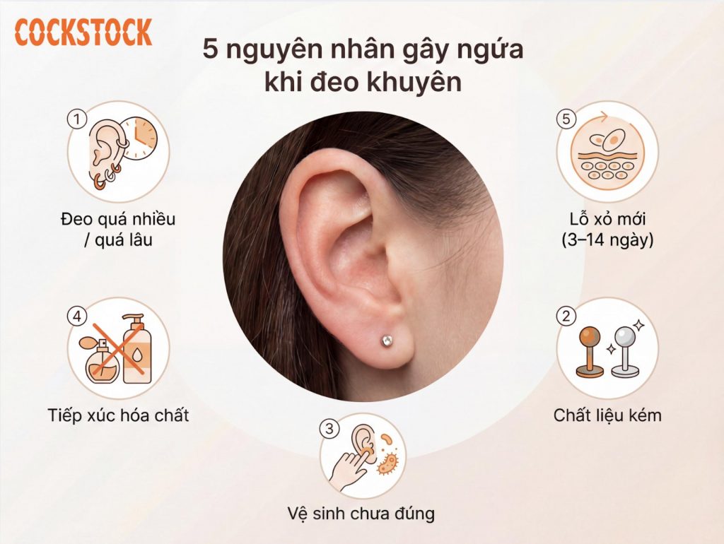 Bài viết dưới đây, COCKSTOCK sẽ giúp bạn nhận biết đúng nguyên nhân, cách xử lý an toàn tại nhà và thời điểm nên kiểm tra chuyên môn để yên tâm đeo khuyên lâu dài.